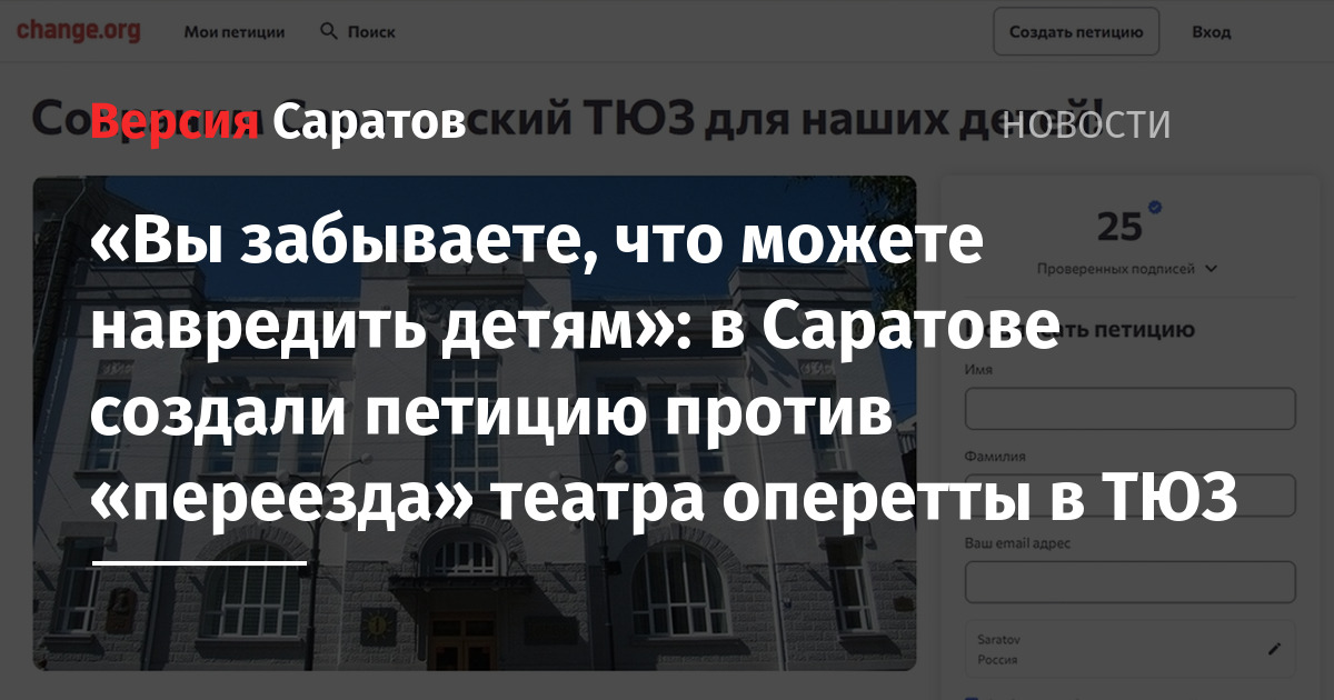 «Вы забываете, что можете навредить детям»: в Саратове создали петицию против «переезда» театра оперетты в ТЮЗ