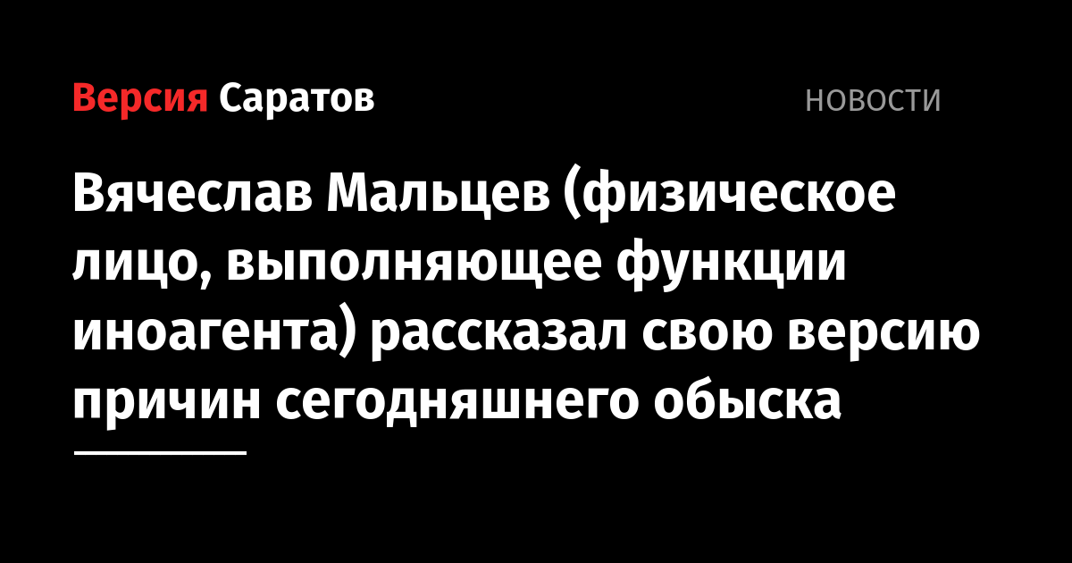 Как ранее сообщало ИА «Версия-Саратов», сегодня днем у Вячеслава Мальцева (физическое лицо, выполняющее функции иноагента) прошел обыск. Около получаса назад Вячеслав Вячеславович прокомментировал сложившуюся ситуацию в своем блоге.
