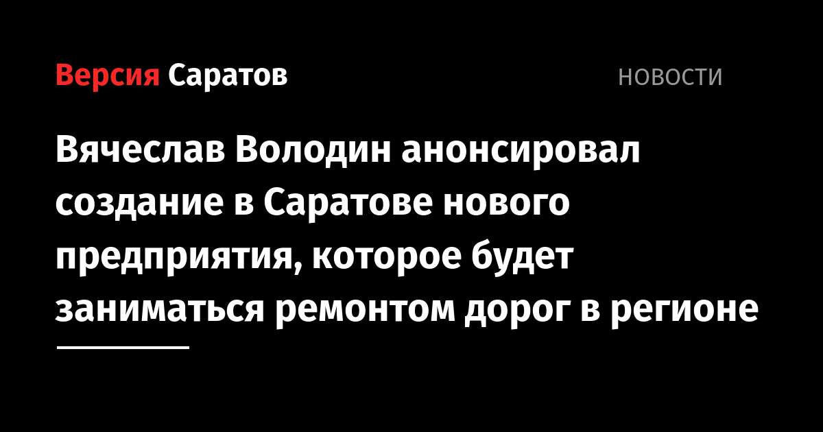 Спикер Госдумы Вячеслав Володин рассказал, что в Саратове может появиться новое предприятие, которое будет заниматься ремонтом, содержанием и строительством дорог. Называться оно будет «Нижняя Волга». По словам Володина, работать на предприятии станут 122 человека. За ним планируется закрепить федеральные дороги, проходящие по территории нашего региона, а также часть дорог соседних областей.