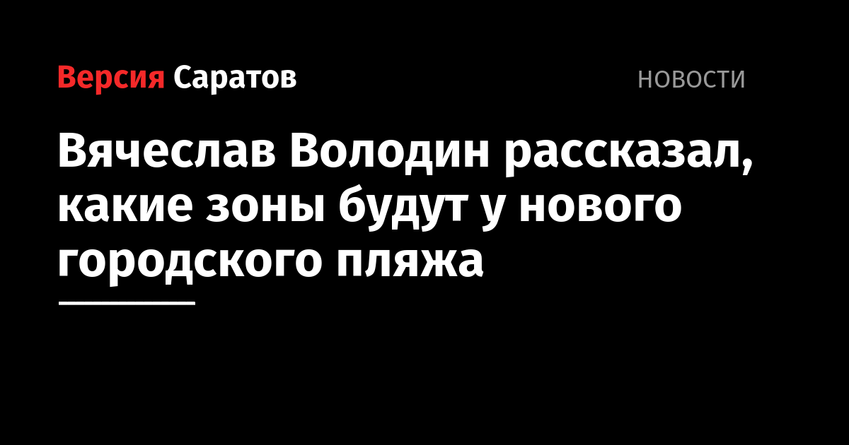 Председатель Госдумы Вячеслав Володин в эфире телеканала «Россия 24» рассказал о планах по организации нового городского пляжа в Саратове. «Хотелось бы, чтобы и город, и область задумались и стали готовиться к тому, что такие места отдыха, скопления горожан появятся в городе. И для того, чтобы у людей была возможность добраться комфортно, чтобы не только появился пляж, но и была инфраструктура, зона отдыха для детей, зона под кафе, стоянки для автомобилей», — отметил спикер.