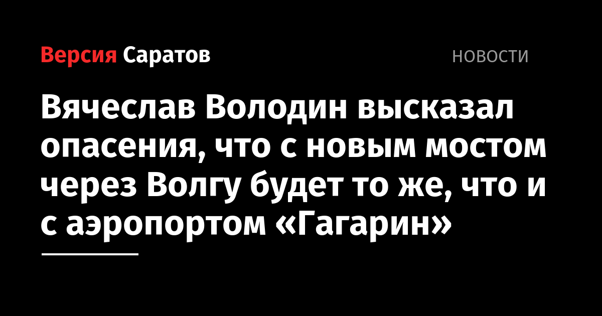 Спикер Госдумы Вячеслав Володин заявил, что до того, как состоялась презентация проекта нового моста через Волгу в Саратовской области, необходимо было заняться землеотводом. Об этом он рассказал в эфире телеканала «Россия 24». «Знаете, как может получиться? Как с аэропортом „Гагарин“. Те же и скупят (землю — прим. ред.). Те, кто ближе к власти, либо представители ее. Так же там получилось. А потом у них выкупали, а потом с ними диалог вели. Сейчас это же ничего не стоит, но вы знаете, где пройдет будущая дорога, где планируется мостовой переход. Возьмите и сделайте все отводы. Как только подойдем уже к вопросам начала строительства, там много участков окажется понятно чьих. Вот этого бы не хотелось», — отметил Володин.