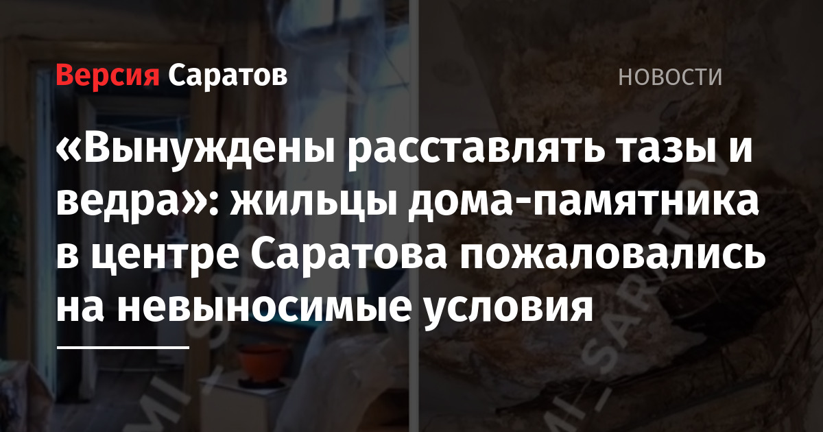 Жильцы дома-памятника в центре Саратова жалуются, что там течёт крыша. Пост с рассказом о такой проблеме появился в Telegram-канале «Новости Саратова и области».