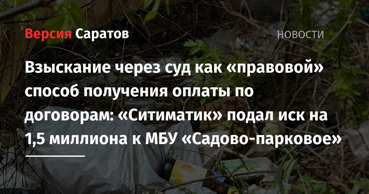В Саратове компания «Ситиматик» подала иск к МБУ «Садово-парковое» (директор — Евгений Савкин) о взыскании крупной денежной суммы. Соответствующая информация появилась в картотеке Арбитражного суда.