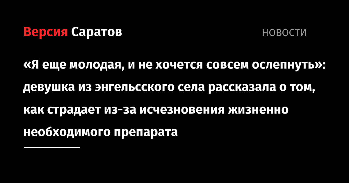 На портале «Лица» появился очередной крик о помощи. 17-летняя Анастасия — инвалид детства, проживающая в селе Терновка Энгельсского района — обратилась к уполномоченному по правам ребёнка в Саратовской области Татьяне Загородней. Она рассказала, что может ослепнуть из-за отсутствия необходимого препарата.
