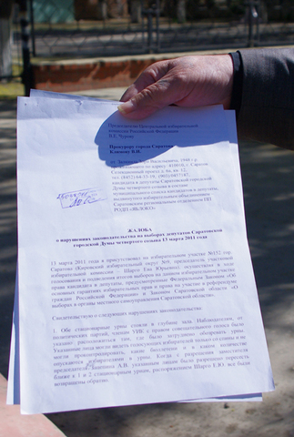 Сегодня утром у здания 24 школы прошел одиночный пикет члена партии «Яблоко» Зори Залкинда. Как рассказал сам пикетирующий, таким образом он пытается напомнить о том, как проходили выборы в Саратовскую гордуму 13 марта.