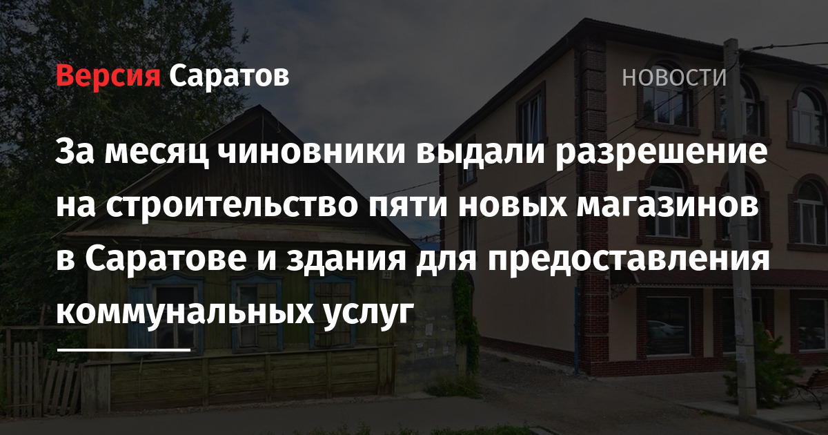 В конце 2023 года и начале 2024 года в течение месяца министерство строительство и ЖКХ Саратовской области были выданы разрешения на строительство нескольких торговых объектов, а также некого здания для оказания коммунальных услуг. Перечень выданных разрешений чиновники предоставили в ответ на официальный запрос ИА «Версия-Саратов».