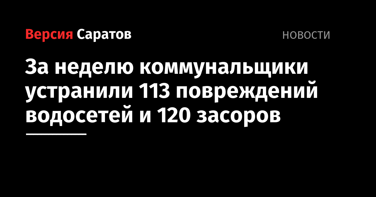 Специалисты ООО «Концессии водоснабжения — Саратов» в ежедневном круглосуточном режиме обслуживают городские коммуникации. За период с 8 июля по 14 августа специалисты ООО «КВС» устранили 113 повреждений городских водопроводных коммуникаций.