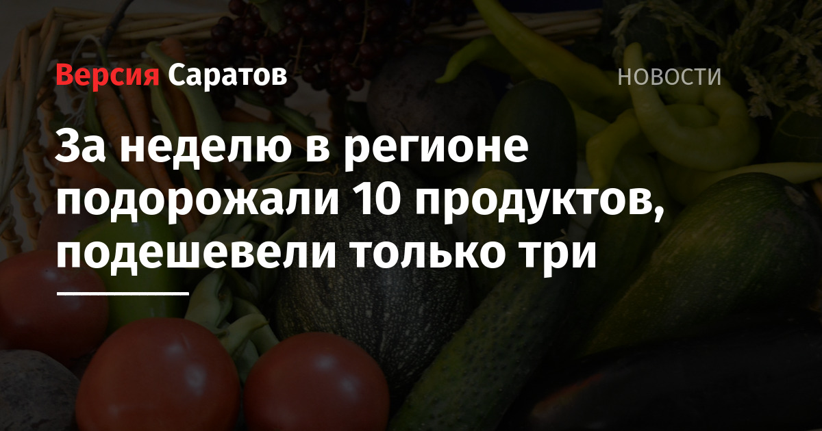 За неделю в Саратовской области подорожали 10 видов продуктов, подешевели только три. Актуальную информацию опубликовал Саратовстат.