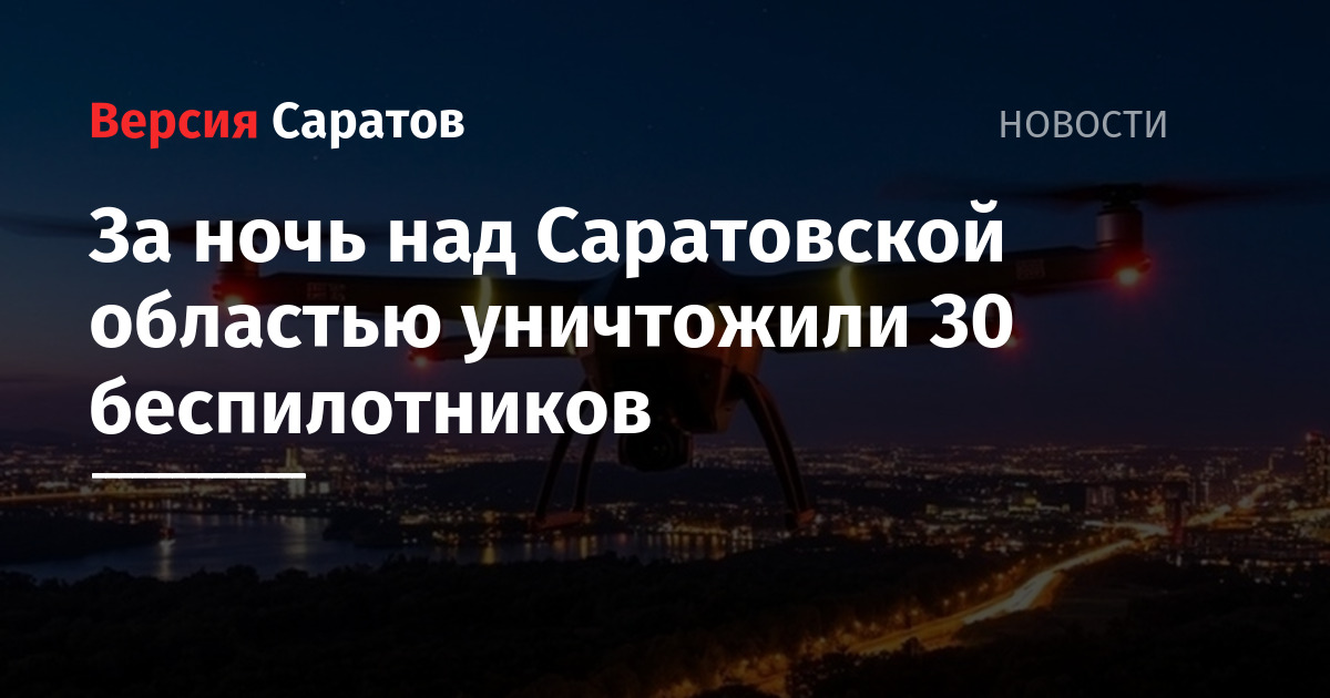 Ночью над территорией Саратовской области было сбито 30 украинских беспилотников, сообщили в Мигобороны России.