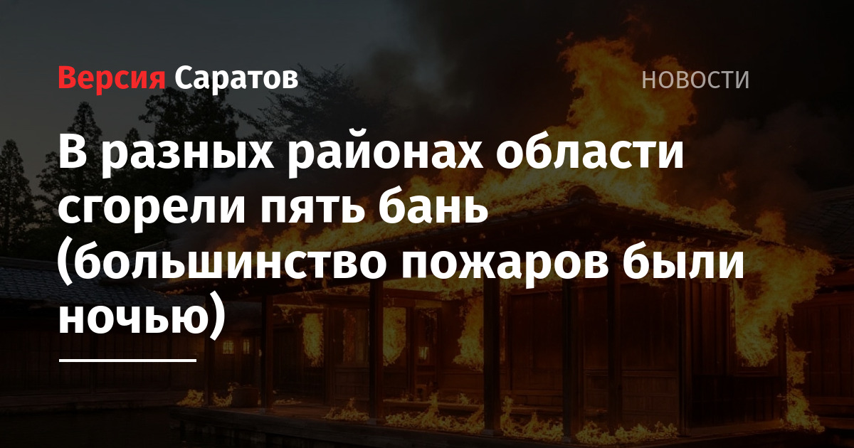 В Пугачеве баня загорелась 7 февраля в 23:13, в деревне Юрьевка Гагаринского района — 8 февраля в 00:23, в Красноармейске — 8 февраля в 01:17, в селе Вязовка Татищевского района — 8 февраля в 01:22, в селе Лавровка Красноармейского района — 8 февраля в 14:48. О пострадавших не сообщается.