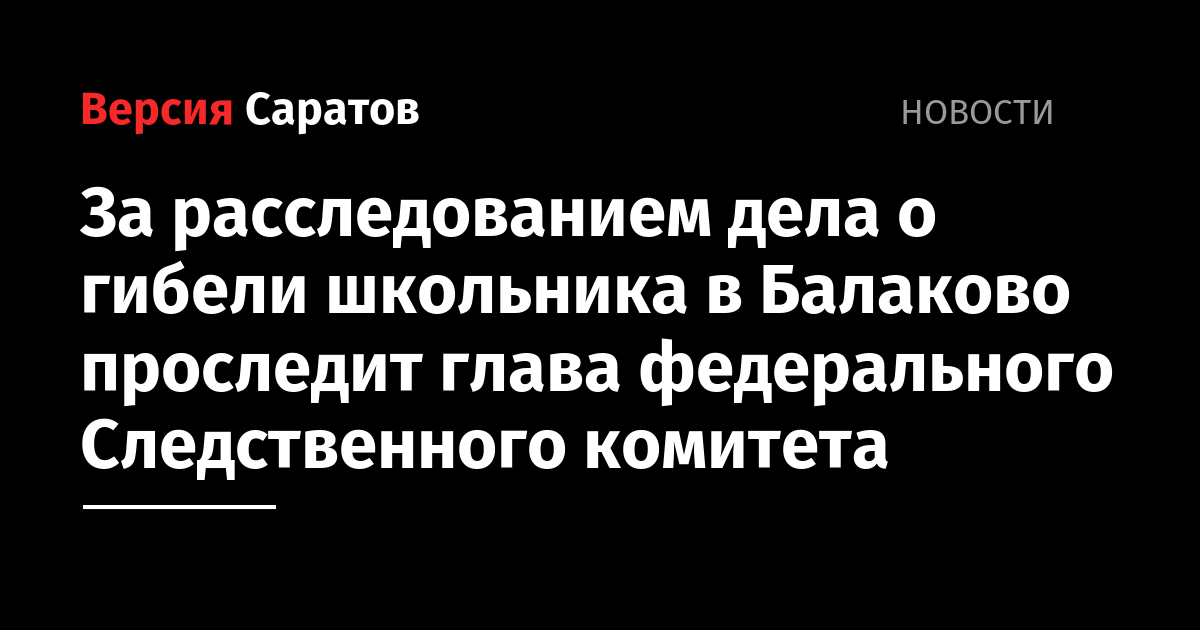 Председатель Следственного комитета РФ Александр Бастрыкин взял на контроль ход расследования уголовного дела, возбужденного по факту гибели 8-летнего мальчика в Балаково.