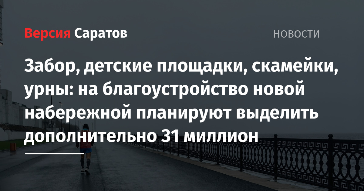 Речь идёт об увеличении ассигнования комитету дорожного хозяйства на сумму в 31 миллион 382 тысячи рублей. Эти средства планируется направить на благоустройство новой набережной на участке от Валовой до Большой Сеченской. На первом этапе работ планируется установка забора, модульных зданий, скамеек, урн и детских площадок. Вопрос о принятии поправки в итоге был вынесен на рассмотрение в ходе предстоящего заседания гордумы.