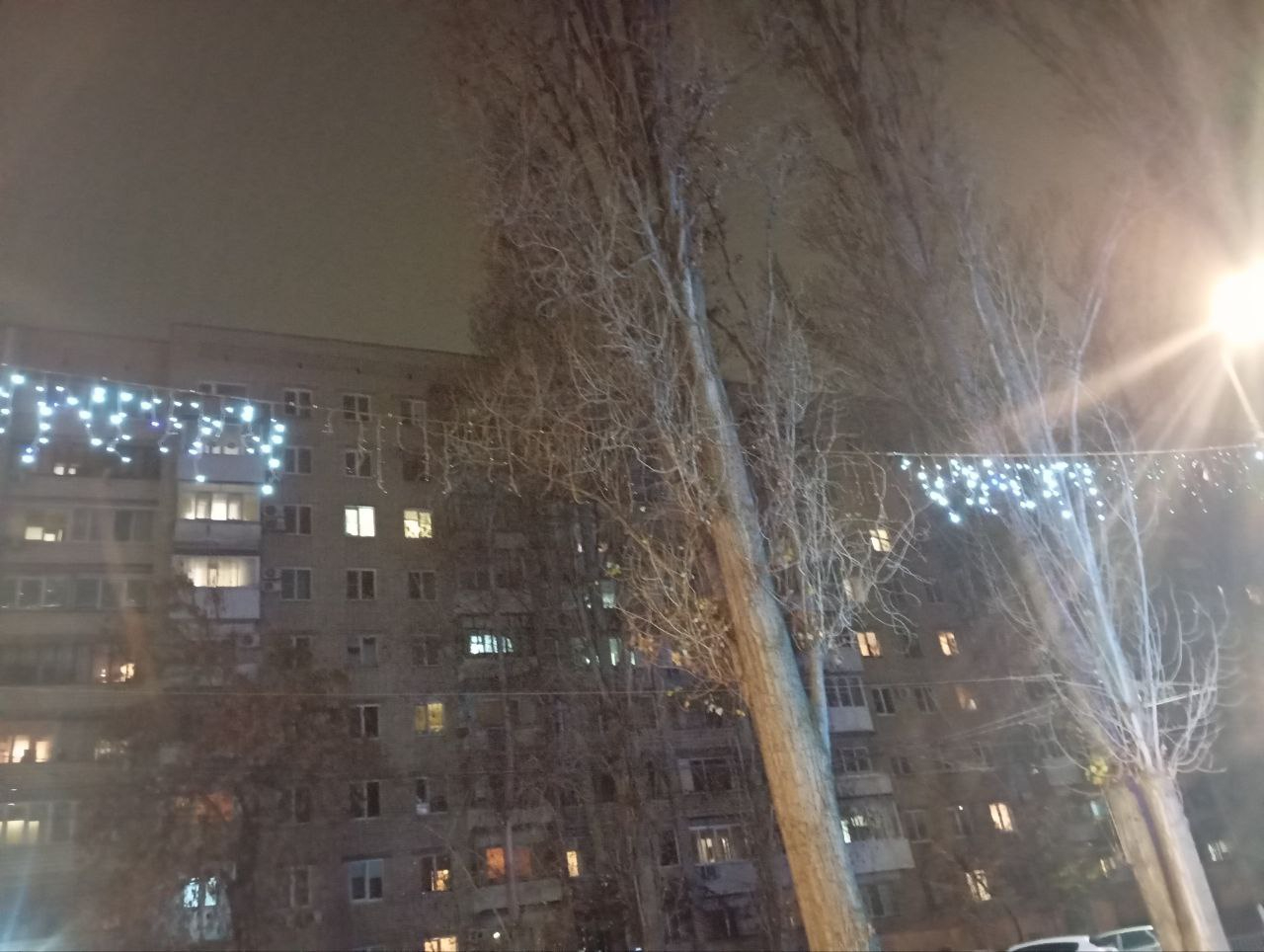 Саратовец Андрей выложил в чате чиновников снимки, сделанные на Рахова, в районе пересечения с Шелковичной. На них видно, что на вывешенной гирлянде есть не горящие участки.