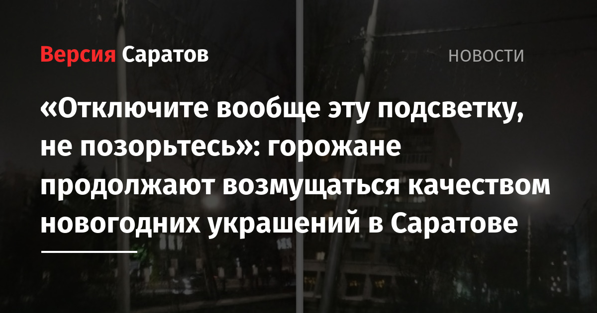 Отметим, что аналогичные жалобы на качество иллюминации поступали от горожан неоднократно. Ранее саратовцы обращали внимание на удручающее состояние световых фигур, установленных к Новому году. Некоторые из них выглядели помятыми или ржавыми.