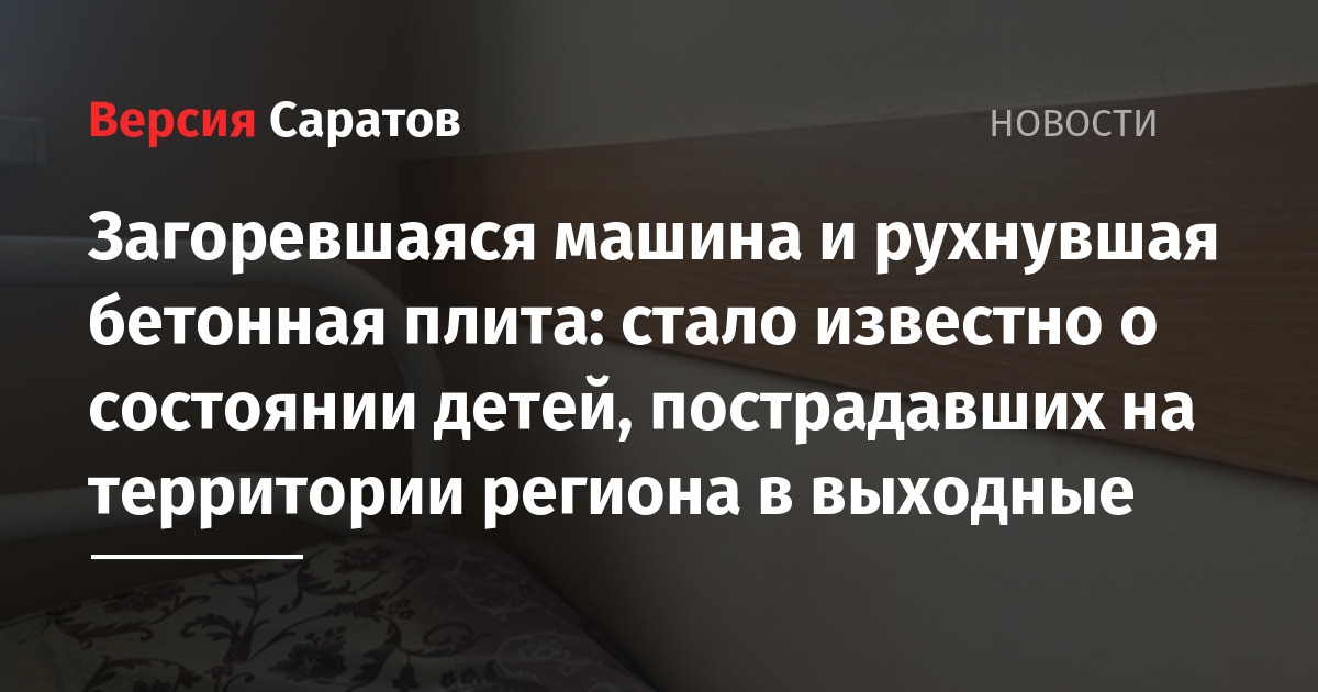 Загоревшаяся машина и рухнувшая бетонная плита: стало известно о состоянии детей, пострадавших на территории региона в выходные