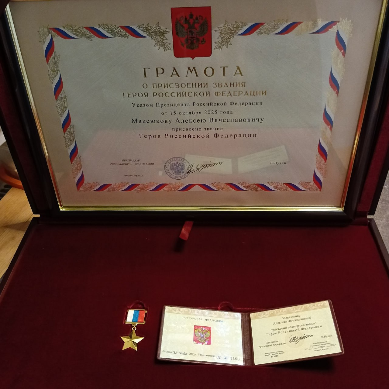 Семье Алексея Максюкова из Красного Кута вручили звезду Героя России. Приказ о награждении Владимир Путин подписало 15 октября, но вручение звезды, с согласия мамы и сестры героя, состоялось в день 320-летия морской пехоты 27 ноября 2025 года в главном штабе ВМФ в Санкт-Петербурге.