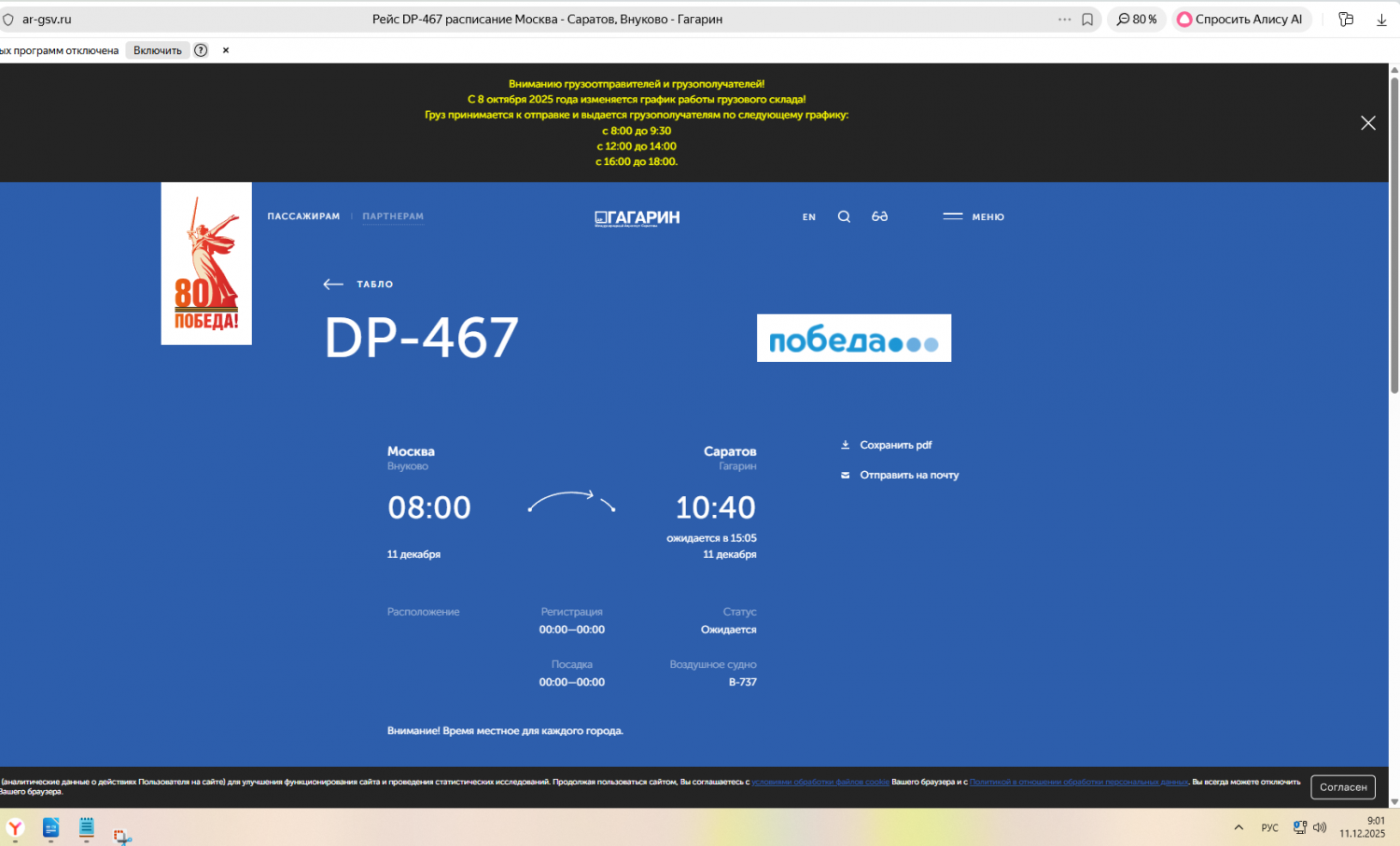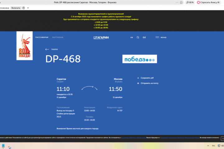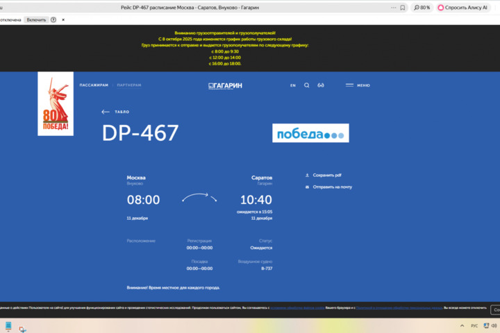- Саратовский аэропорт «Гагарин» перестал принимать и отправлять самолеты