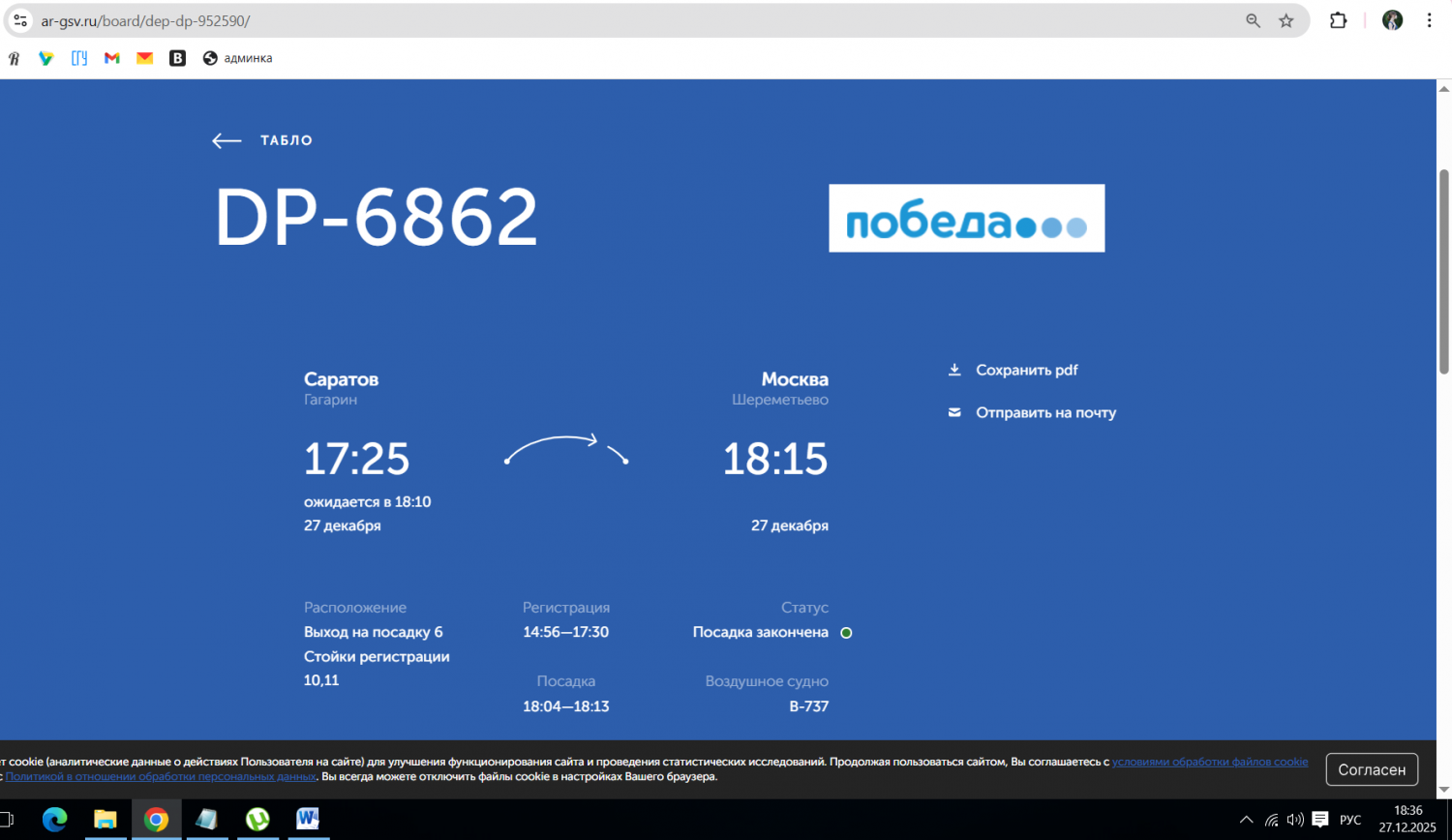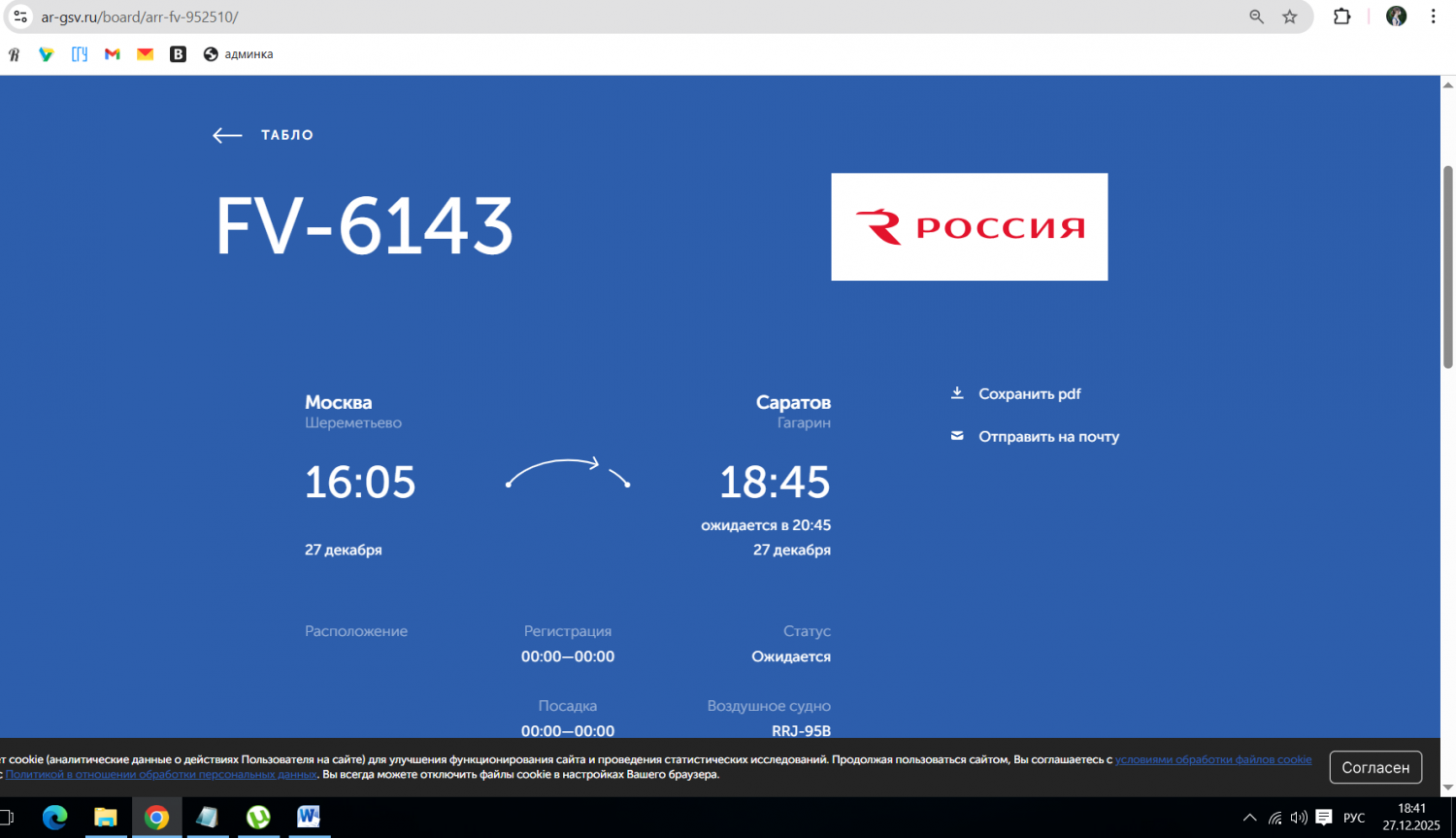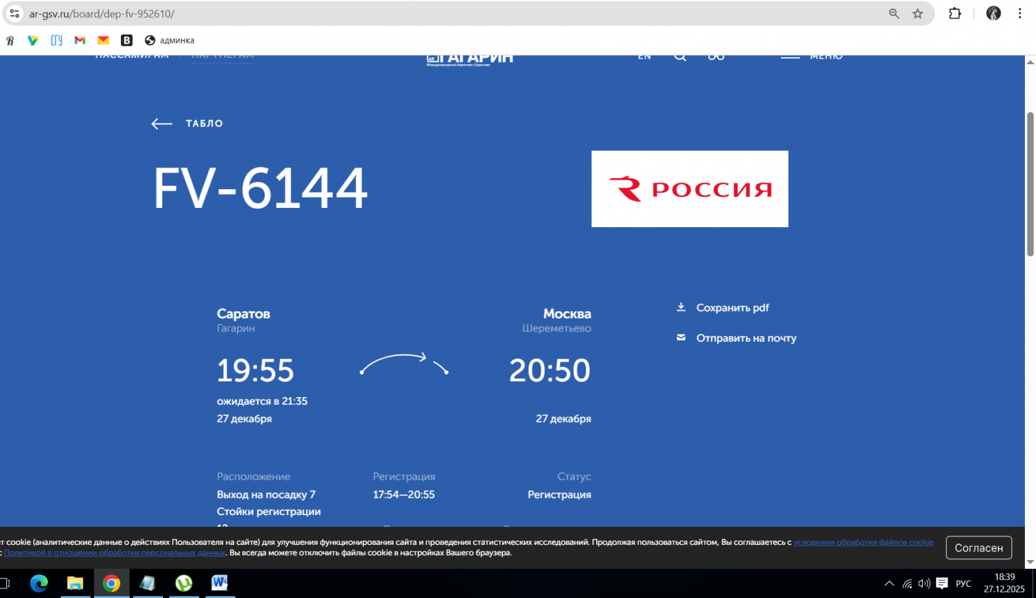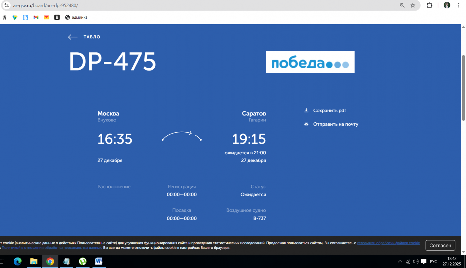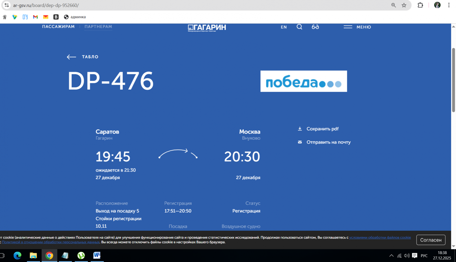 Сегодня, 27 декабря, на фоне закрытия столичных аэропортов, в саратовском «Гагарине» наблюдаются задержки рейсов. Это следует из онлайн-табло воздушной гавани.