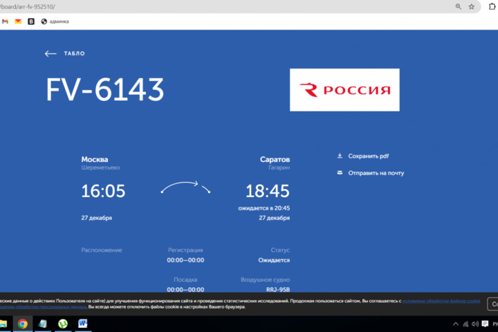 Судно из «Шереметьево» прилетит в Саратов вместо 18:45 в 20:45. Самолёт из «Внуково» вместо 19:15 ожидают в Саратове теперь в 21:00.