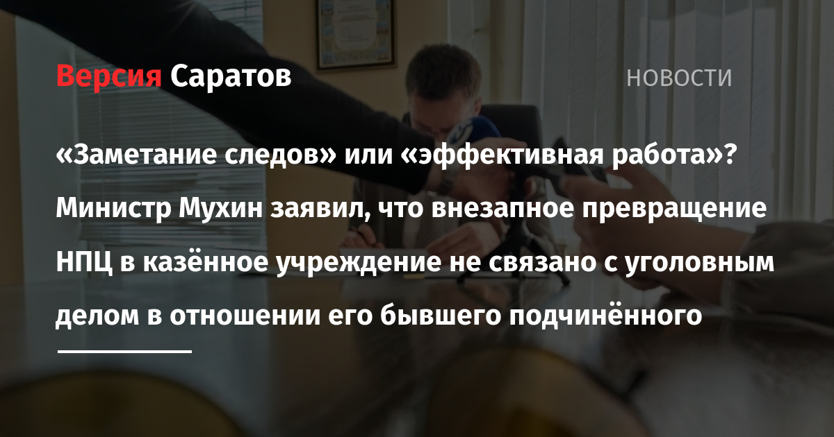 Сейчас СУ СК по Саратовской области расследует уголовное дело по факту превышения должностных полномочий экс-директором НПЦ, а также представителями комитета культурного наследия (возглавляет министр Владимир Мухин). Поскольку смена формы юридического лица совпала с этими событиями и предполагает переход учреждения на осуществление закупок в рамках 44-ФЗ, наблюдатели предположили, что со стороны чиновников может иметь место «заметание следов».