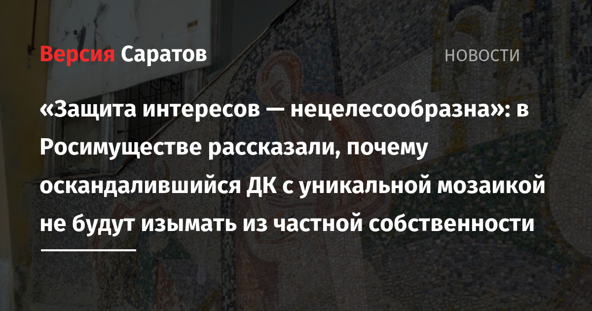«Защита интересов — нецелесообразна»: в Росимуществе рассказали, почему оскандалившийся ДК с уникальной мозаикой не будут изымать из частной собственности