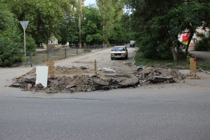 Место работы ремонтников затрудняет движение автомобилей. На указанном участке скапливается мусор и ветки деревьев. Кроме того, рядом с ямой разрушен бордюрный камень.
