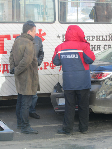 Службы ГИБДД на место происшествия пока не подъехали. Из-за аварии временно приостановлено движение трамваев №3, 9, 10.