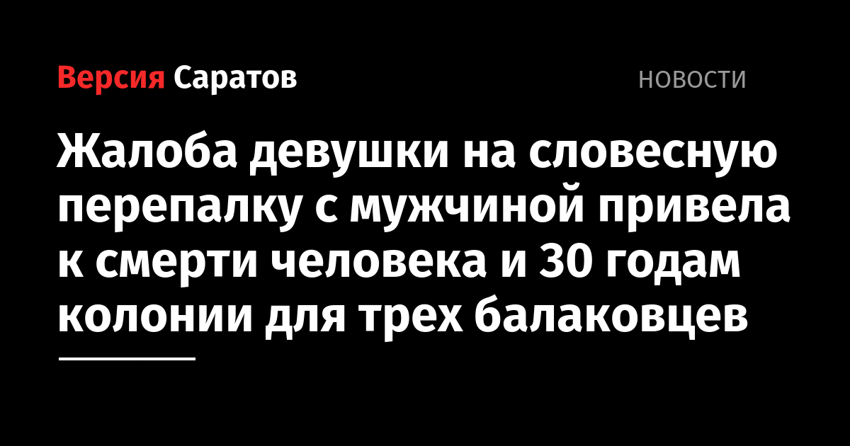 Жалоба девушки на словесную перепалку с мужчиной привела к смерти человека и 30 годам колонии для трех балаковцев