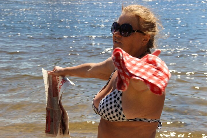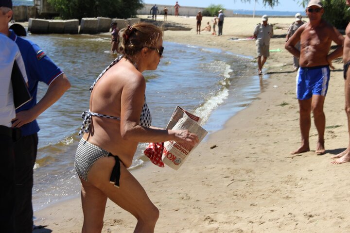 Стражи порядка хотели вручить пожилой женщине, загорающей на месте, памятку о правилах купания. Однако она ее не взяла, а устроила на потеху отдыхающим скандал. Женщина размахивала перед присутствующими коммунистической газетой. Скандалившая сообщила, что ее зовут Ольга Жукова и она работает «директором НИИ Менделеева».