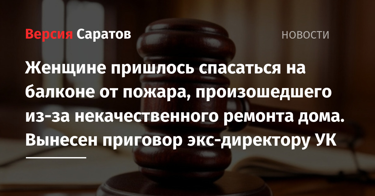 Женщине пришлось спасаться на балконе от пожара, произошедшего из-за некачественного ремонта дома. Вынесен приговор экс-директору УК