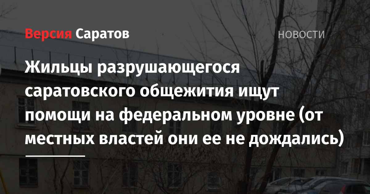 Жильцы аварийного общежития, расположенного на улице 4-я Дачная в Саратове, обратились за помощью в федеральный Следственный комитет. Об этом сообщили в информационном центре ведомства.