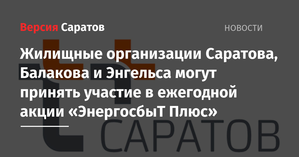 Жилищные организации Саратова, Балакова и Энгельса могут принять участие в ежегодной акции «ЭнергосбыТ Плюс»