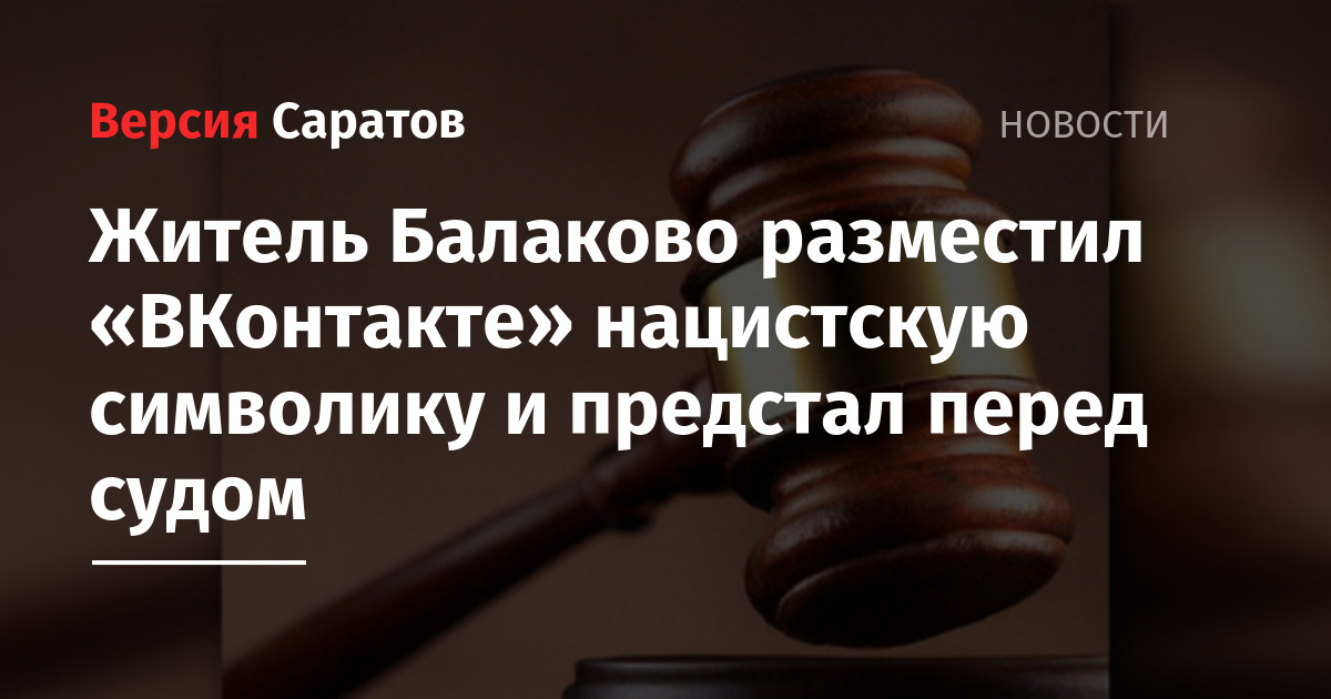 Житель Балаково по фамилии Данченко был привлечен к административной ответственности за размещение в соцсети «ВКонтакте» нацистской символики. Об этом сообщается на сайте Балаковского районного суда.