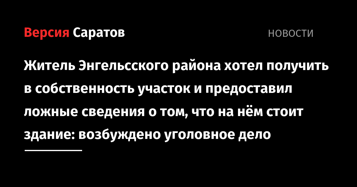 Житель Энгельсского района хотел получить в собственность участок и предоставил ложные сведения о том, что на нём стоит здание: возбуждено уголовное дело