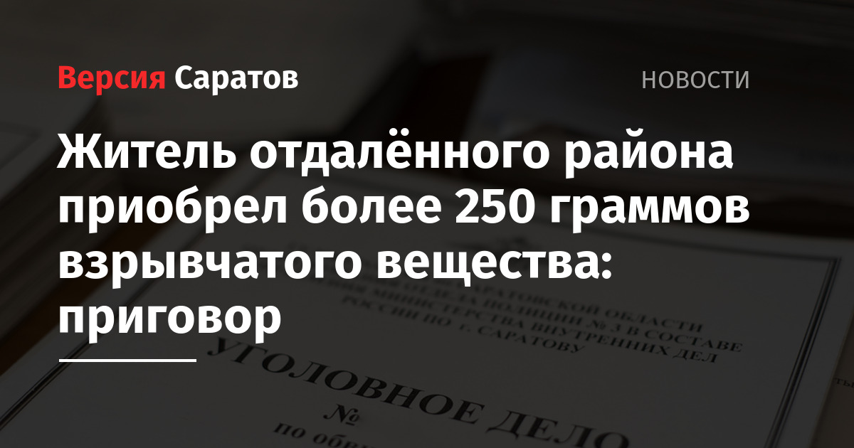 В Турковском районе вынесли приговор по уголовному делу в отношении 64-летнего местного жителя. Он признан виновным в незаконном приобретении и хранении взрывчатых веществ (ч. 1 ст. 222.1 УК РФ). Об этом рассказали в прокуратуре Саратовской области.