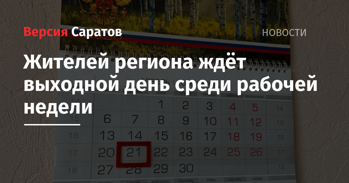 Жителей региона ждёт выходной день среди рабочей недели