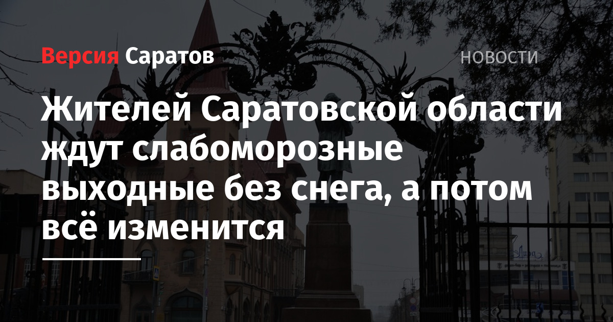 «В выходные погода в Саратовской области будет определяться влиянием гребня антициклона. В большинстве районов области без существенных осадков. В отдельных районах области ожидается ухудшение видимости из-за тумана, местами по области гололед, на дорогах гололедица. Погода измениться ночью с воскресенья на понедельник, область окажется под влиянием ложбины от циклона, ожидается выпадение осадков в виде снега и мокрого снега.