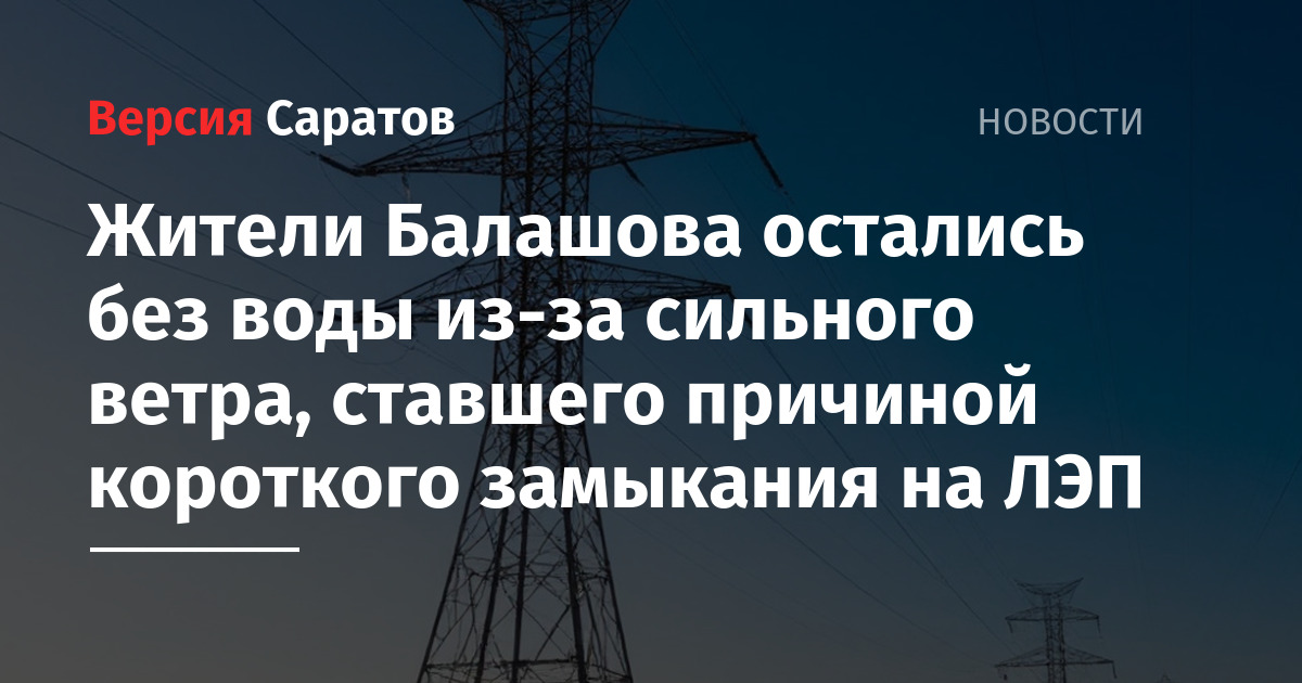 Жители Балашова остались без воды из-за короткого замыкания ЛЭП, которого произошло в результате усиления ветра. Как сообщает администрация района, случилась «просадка напряжения в контактной сети», что привело к остановке оборудования на насосно-фильтрованной станции.