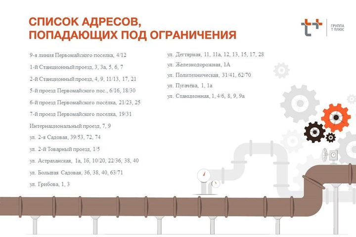 С 9 октября горячее водоснабжение будет ограничено в Заводском районе. До конца дня 10 октября «Т Плюс» будет чинить отрезок теплосети на Заречной. Также завтра в течение дня планируются работы в Ленинском районе — на улице Бережной.