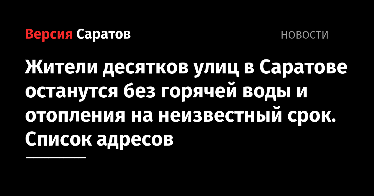 - Отключение горячей воды в Саратове. Энергетики опубликовали список котельных, которые попадают под проверку