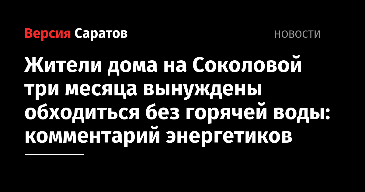 В редакцию ИА «Версия-Саратов» обратились жители дома № 44/62 по улице Соколовой. Горожане рассказали, что в их квартирах уже три месяца нет горячей воды. «При этом ремонтные работы нигде не ведутся», — возмущаются саратовцы.