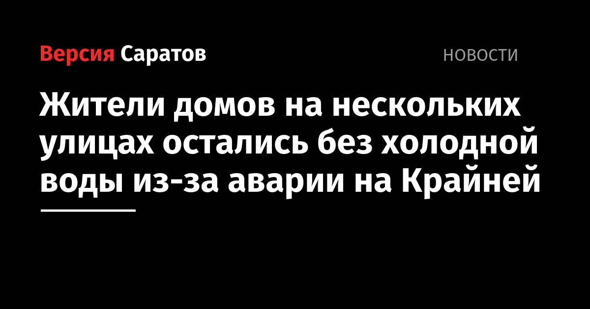 В связи с этим холодной воды не будет по нескольким адресам. По информации пресс-службы ООО «КВС», сюда входят дома на улицах: Танкистов — Крайняя — Соколовая — Большая Садовая.