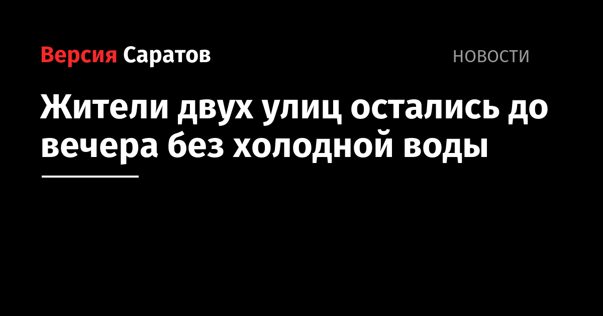 В Саратове до вечера жители двух улиц останутся без холодной воды. Об изменении параметров водоснабжения сообщили в ООО «КВС».