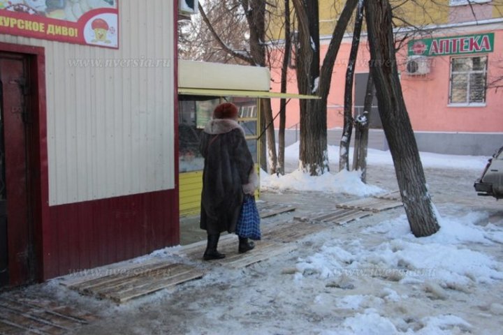 Также льдом покрылись дворы соседних домов. Местные жители аккуратно проходят по образовавшемуся катку, чтобы не поскользнуться.