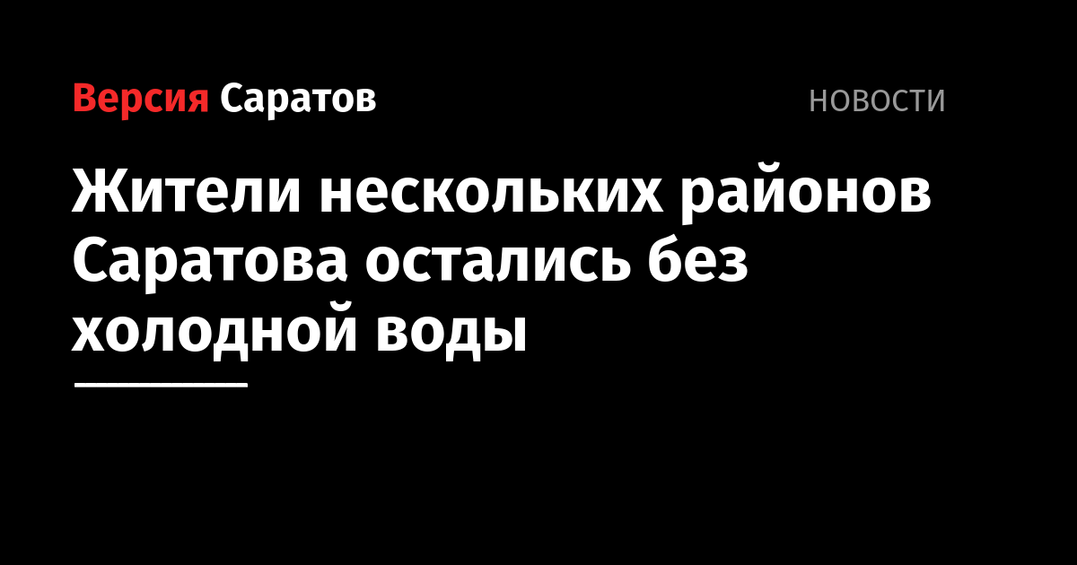 Сегодня, 27 июля, жители нескольких районов областного центра остались без холодной воды. Как сообщает ООО «Концессии водоснабжения-Саратов», из-за работ на городском водопроводе до полуночи воды может не быть у жителей домов № 9 и 9а по Исаева, а также дома № 18 на улице Братьев Никитиных.