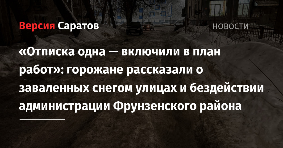 Мы обращались во Фрунзенскую администрацию (глава — Сергей Пименов) ещё до оттепели с просьбой очистить дорогу. Сперва там хотели перевести стрелки на УК, но затем «взяли данный адрес в работу».