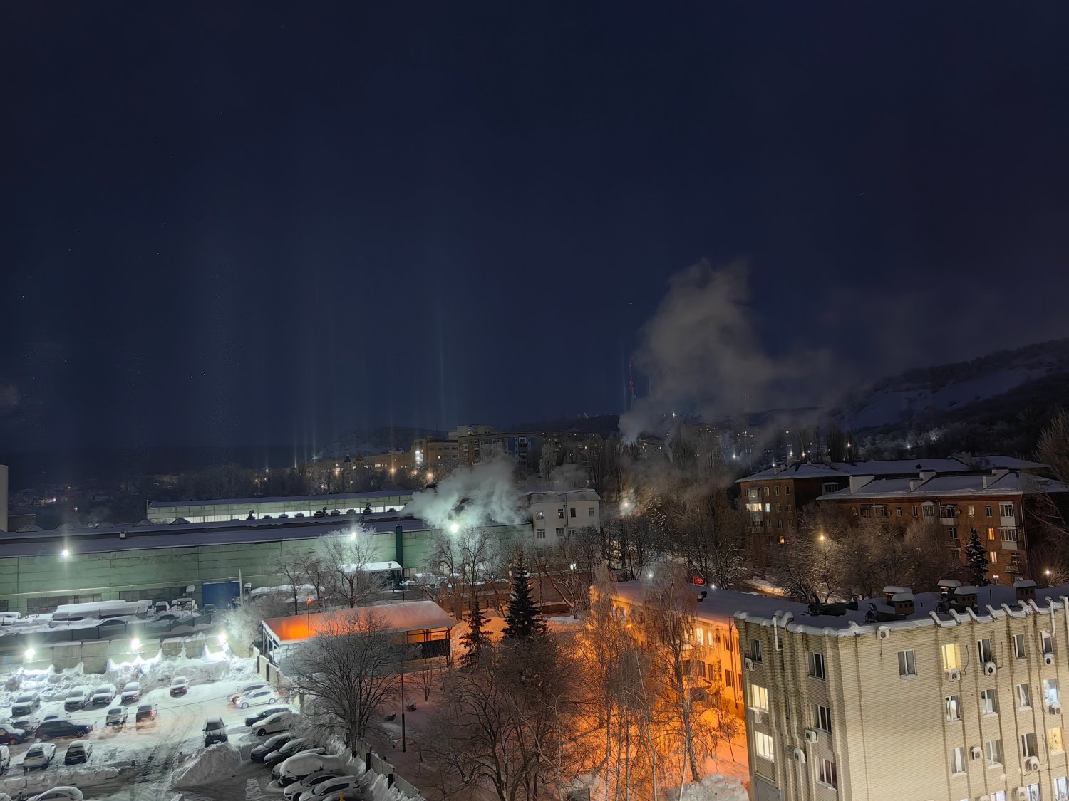 Городской феномен: яркие рекламные щиты и фонари — идеальны для создания этого эффекта в городе. Чем выше точка наблюдения и темнее небо, тем больше таких столбов от разных источников можно увидеть. Скоро в городе станет теплее, и явление уже будет маловероятным», — рассказал учёный в своём Telegram-канале.