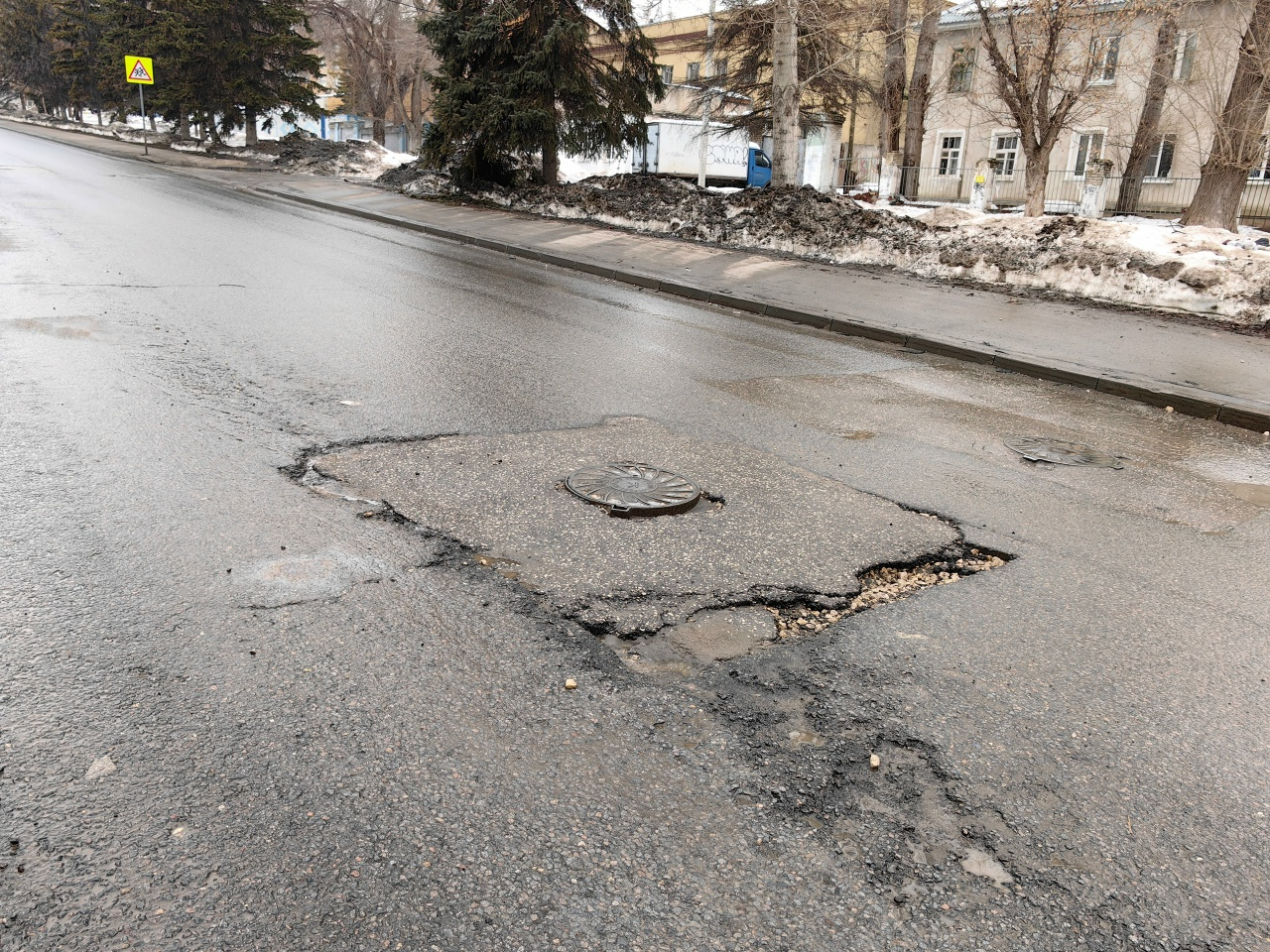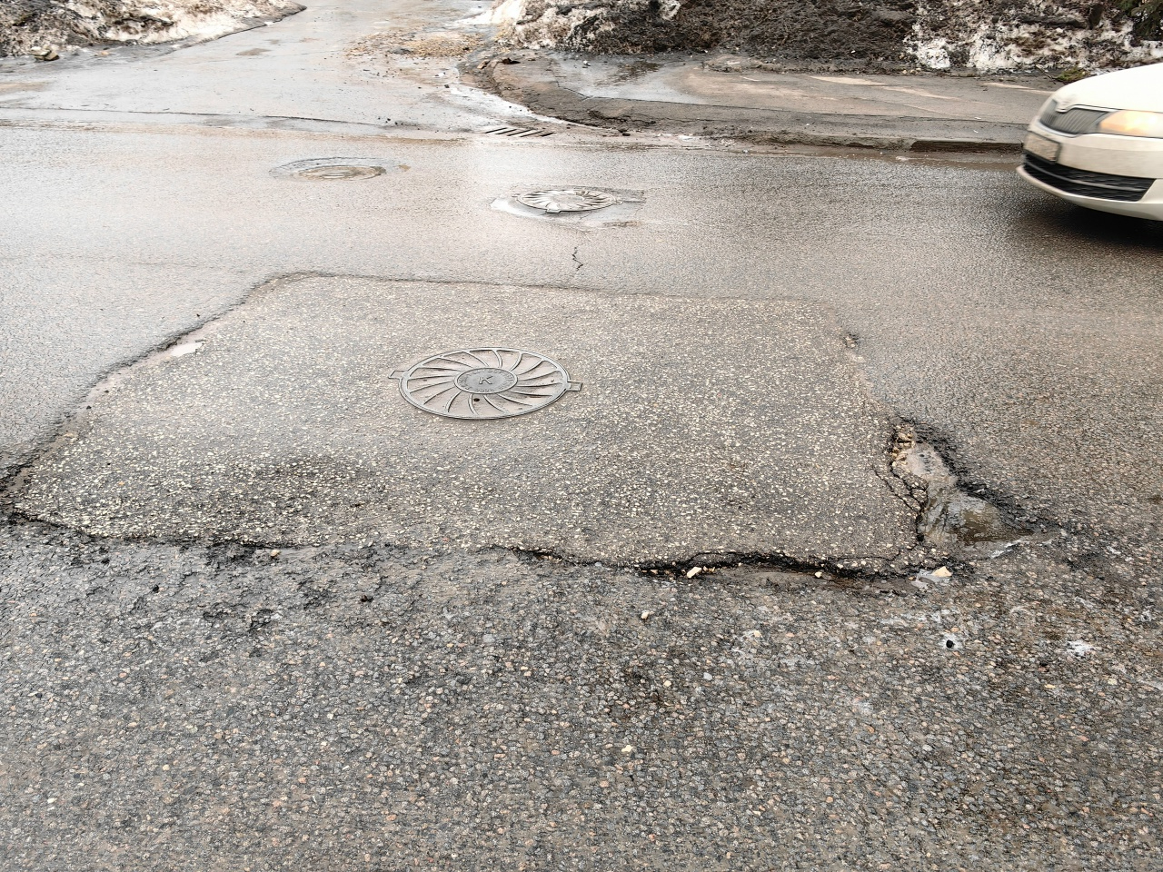 «А теперь весна оголила результат этих работ, — поведал читатель. — Заплатки, которые поставили на месте котлованов, местами просели. Где-то вздыбился и пошёл трещинами асфальт, видимо, после того, как при помощи специального оборудования под него загоняли трубы. Колодцы вообще представляют собой угрозу для жизни водителей и пешеходов… Почему так всегда тут? Уже не первый раз — одно сделают, другим разломают. Я просто в ужасе».