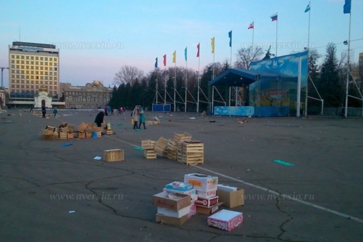 Жители Саратова обратились в редакцию ИА "Версия-Саратов" с жалобой на то, что главная площадь города — Театральная — в минувшие выходные представляла собой большую свалку. На фотографиях, сделанных 21 марта, видно, что вся территория площади усыпана мусором. Помимо мелких бумажек и пакетов, ее "украшали" также ящики и коробки. Отметим, что днем 21 марта на площади проходила сельскохозяйственная ярмарка, не все участники которой, вероятно, сочли необходимым убрать за собой мусор.
