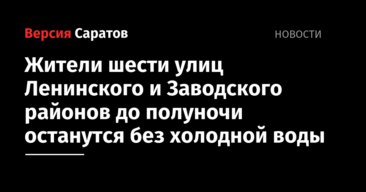 Жители шести улиц Ленинского и Заводского районов до полуночи останутся без холодной воды